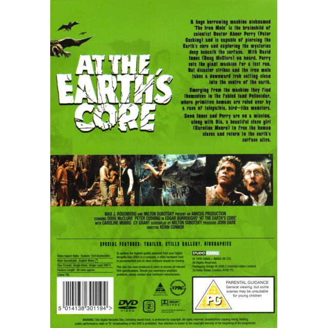 A huge burrowing machine nicknamed 'The IronMole' is the brainchild of scientist Doctor Abner Perry (Peter Cushing) and is capable of piercing the Earth's core and exploring the mysteries deep beneath the surface. With David Innes (Doug McClure) on board. Perry sets the giant machine for a test run. But disaster strikes and the iron mole takes a downward trek cutting clean into the centre of the earth.